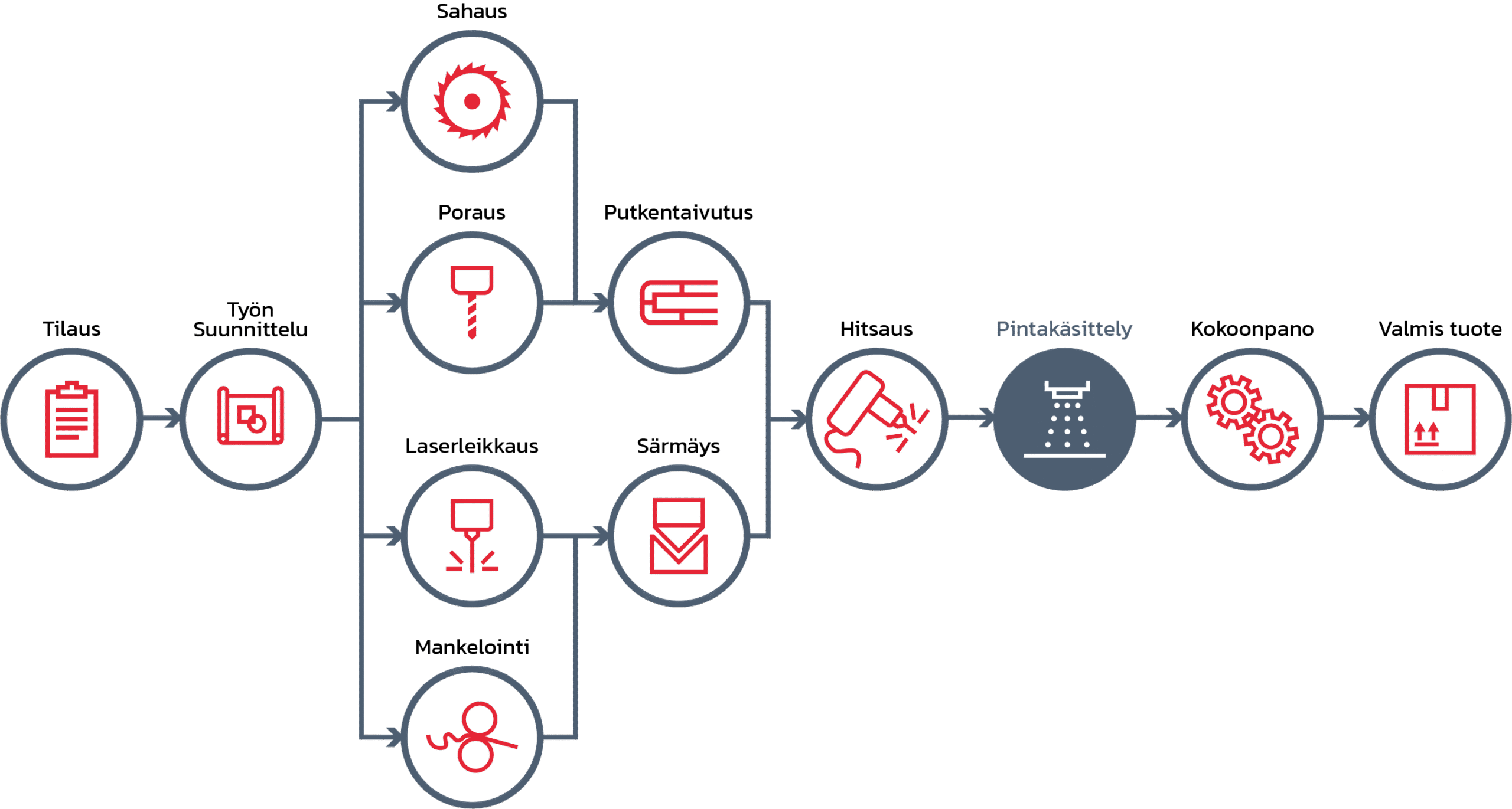 Yhtiö on neljän työkaveruksen kuningasidea. Toni Räty ja kolme muuta perustajajäsentä olivat työskennelleet yhdessä Suomen Levyprofiililla eli nykyisellä Hanzalla. Porukasta löytyi hitsauksen, sahauksen, porauksen, putkentaivutuksen ja laserleikkauksen osaamista ja rutkasti halua yrittää. Päätettiin laittaa firma pystyyn ja vanha työnantaja Suomen Levyprofiili lähti mukaan osakkaaksi.
